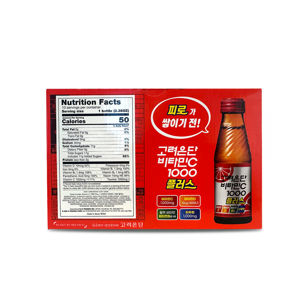 Koryo Eundan Vitamin C 1000 Plus is a premium liquid vitamin packed with 1,000mg of Vitamin C, B vitamins, and zinc to support fatigue recovery, skin health, immune function, and antioxidant protection. Designed for busy modern lifestyles, this fast-absorbing formula ensures quick effectiveness. With its refreshing citrus flavor, it's an enjoyable and effortless way to boost your daily health.